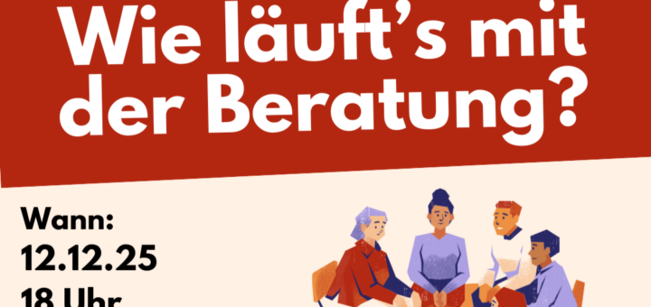 Zusammen mit den anderen Beratungsgruppen aus der OM10 suchen wir das Gespräch um uns über unsere Arbeit austauschen. Wir betrachten dabei kritisch unsere eigenen Perspektiven, Erfahrungen und was wir daraus ziehen. Diese Veranstaltung ist...